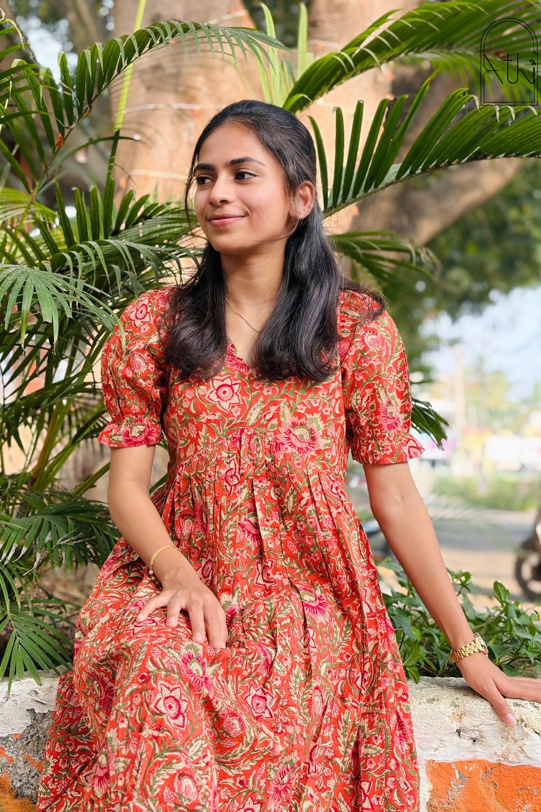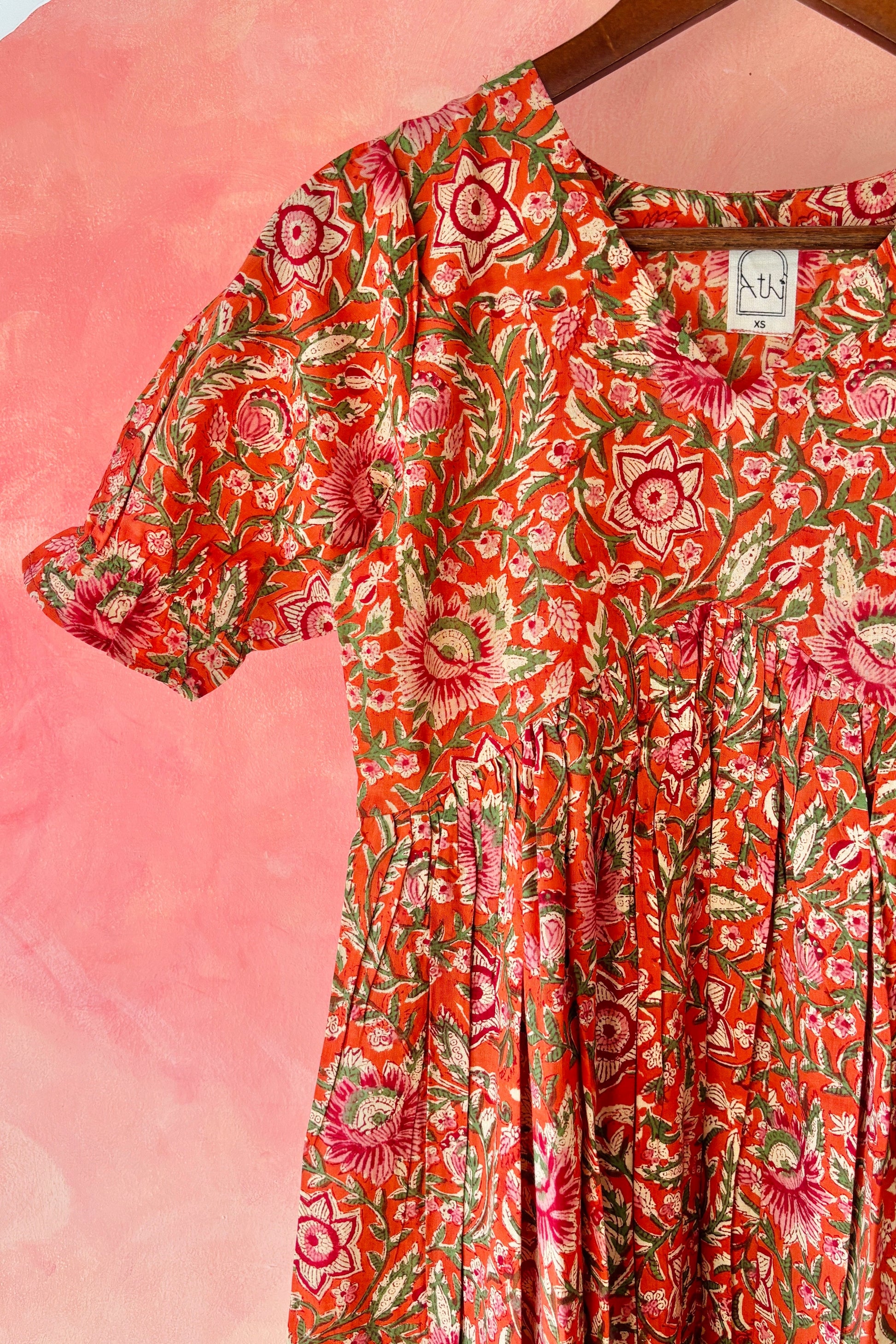 Comfort you'll feel, Style you'll love. This orange soft cotton floral dress is perfect for your casual outings / special occasion.